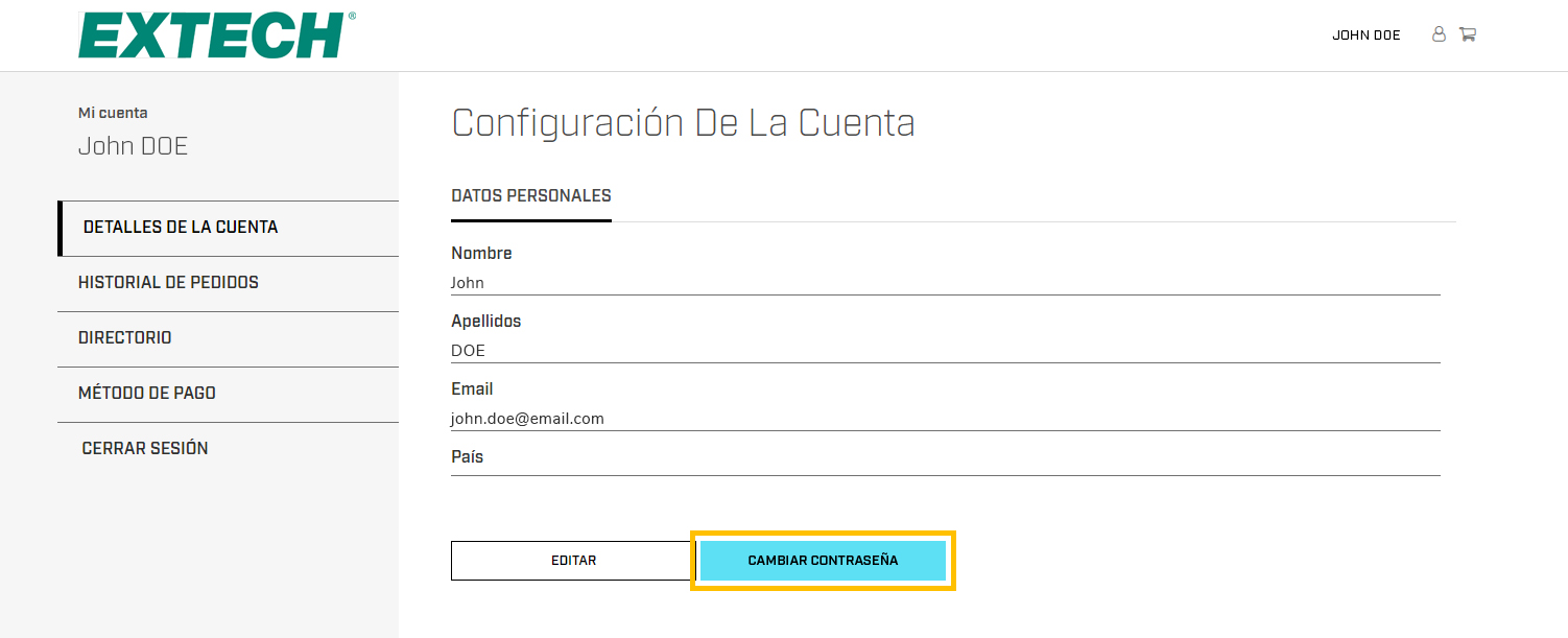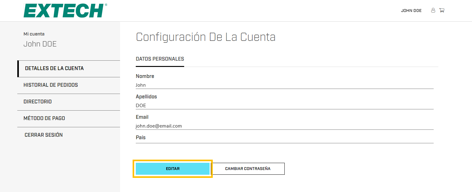Puede cambiar sus datos personales en cualquier momento accediendo a la pestaña Detalles de la cuenta y haciendo clic en el botón Editar.